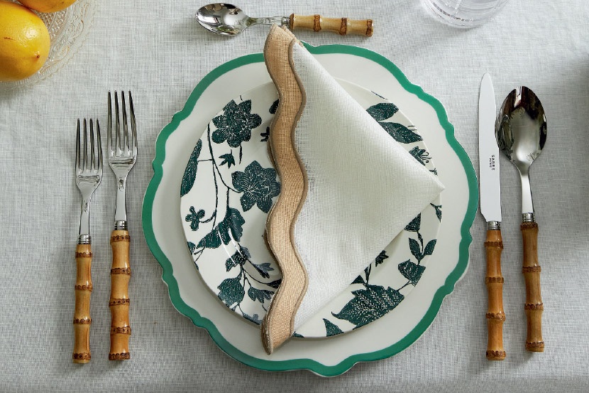 When entertaining outside, embrace the idea that it can feel a little more informal, but don’t go so far down the relaxed rustic route that you forget to bring in a little glamour to elevate even the simplest setting when you’re styling outside. Whether it is introducing metallic accents or bringing out the good crystal, fine linens, and china, there should always be a hint of romance in your scene setting.