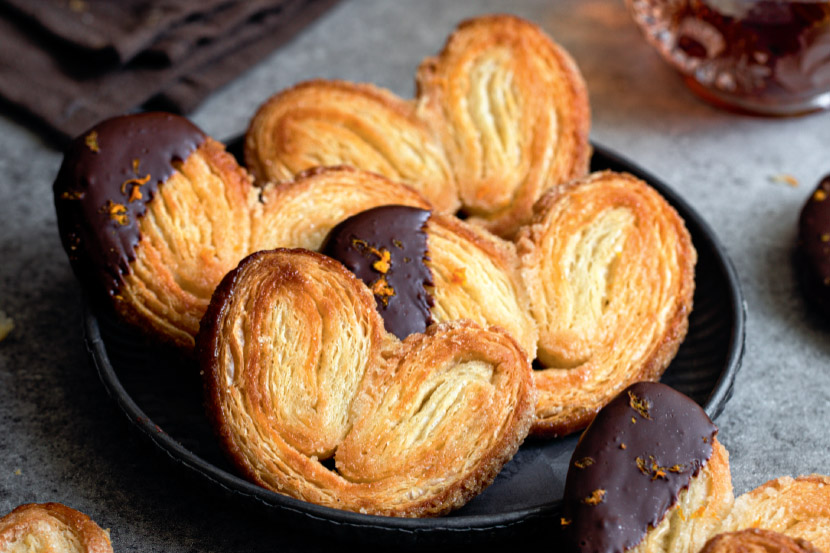 Inspired by the elegance of patisserie counters and café displays, these crisp orange-zested palmiers from chef and author Betül Tunç blend caramelised layers with a hint of citrus and dark chocolate. A beautiful treat to savour any time.